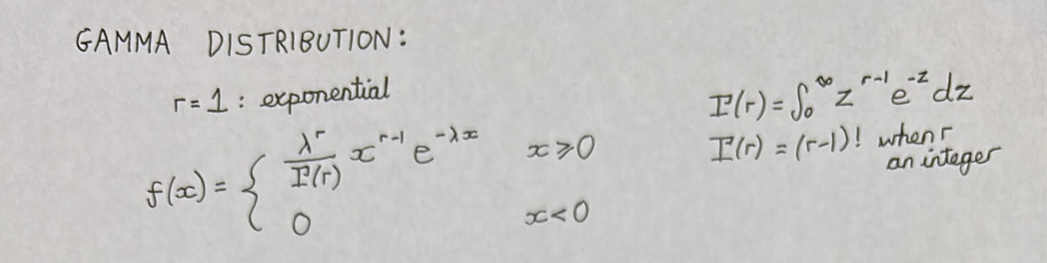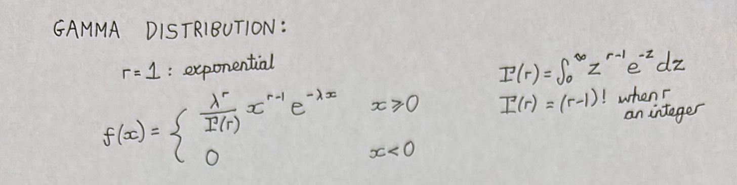 But I had practically forgotten the Gamma distribution, (and that the exponential is a Gamma with ‘shape’ r (I did remember that Gamma generalizes exponential, but not how exactly).