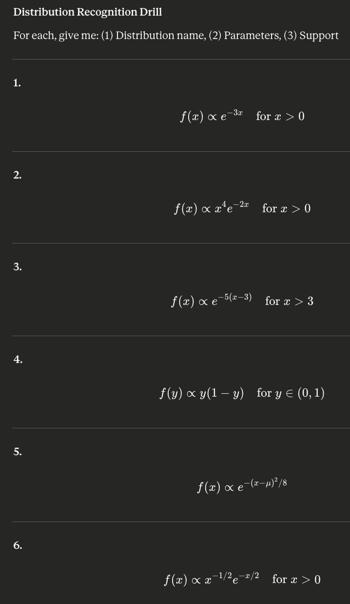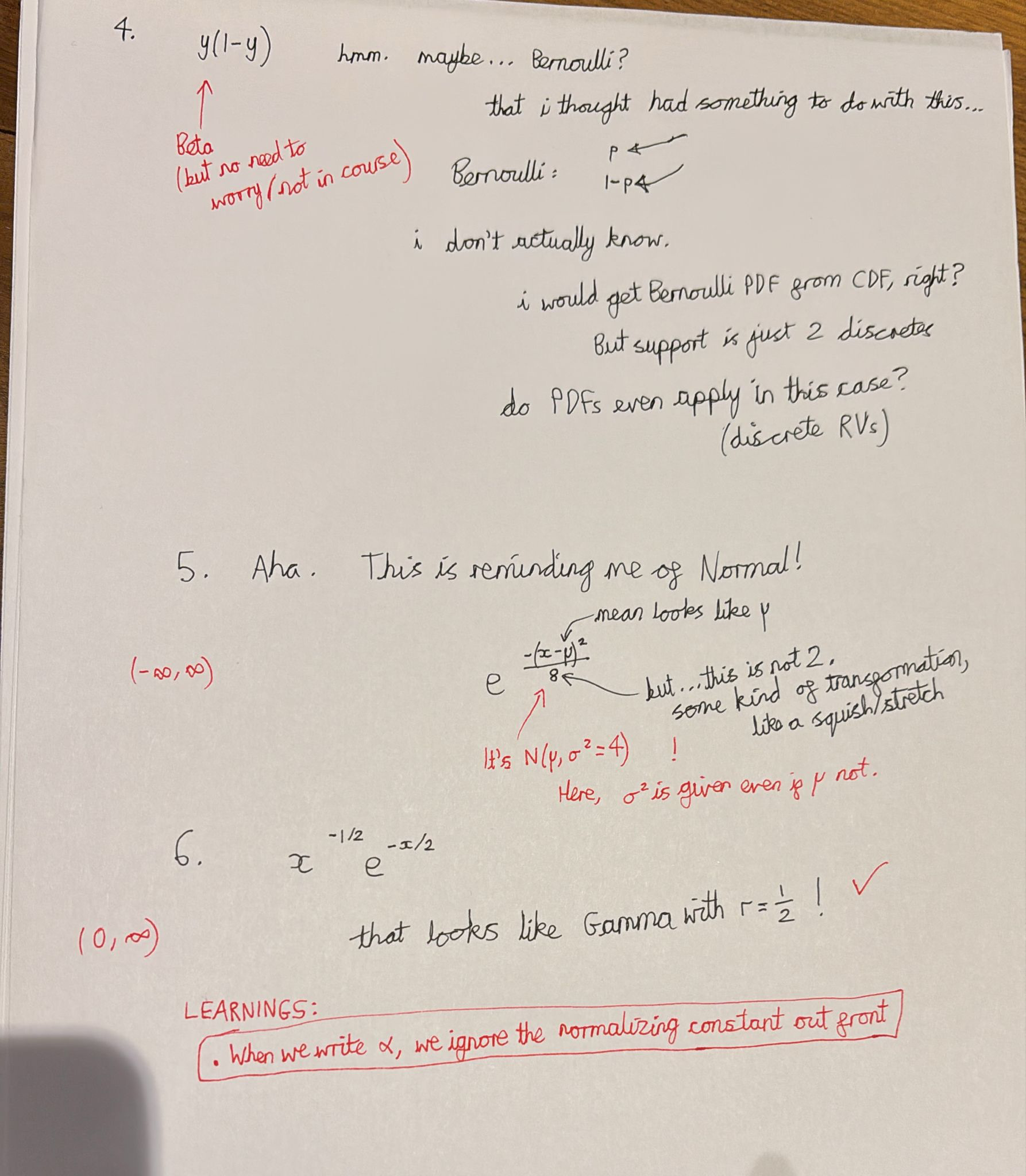 Claude drilled me on distributions, and I realized I don’t need normalizing constant when recognizing what shape a distribution takes.