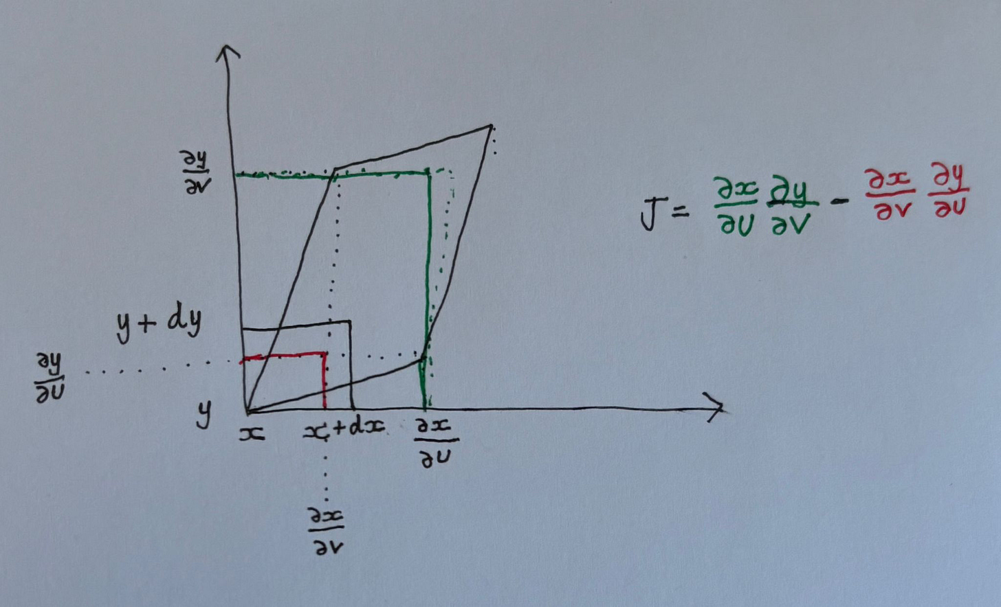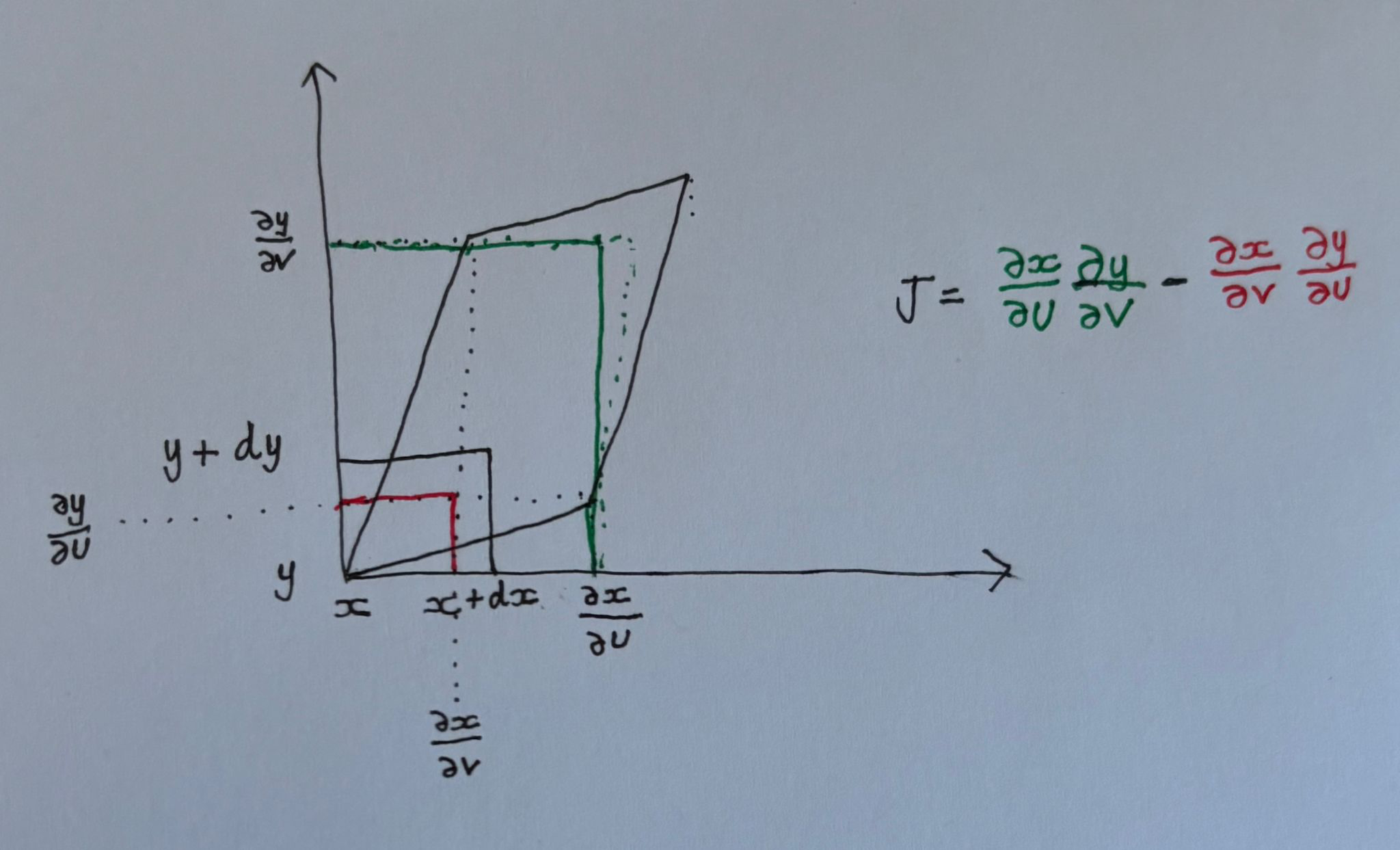 I tried to visualize the way the Jacobian quantifies the stretching of space, because we use it in the ‘change of variables’ transformation formula.