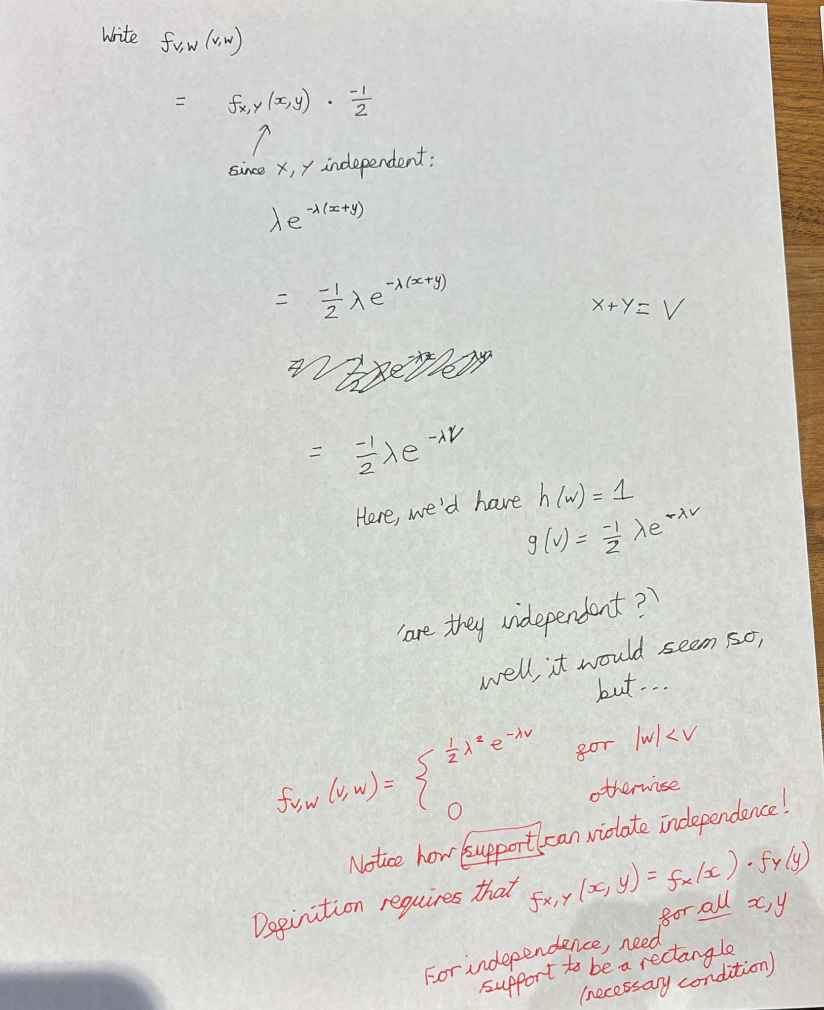 I then looked at a ‘counterexample’ where we can’t guarantee independence, because support for the PDF is limited (to |w| < v).