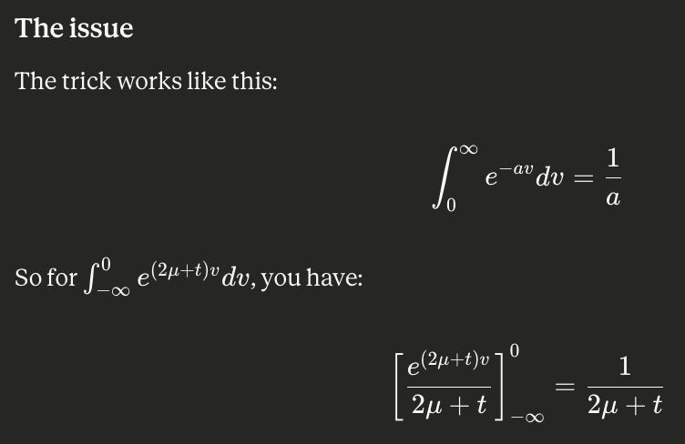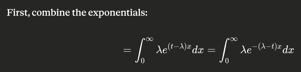 I also tried to factor out terms from the exponent in order to get a PDF integrated over its support, which yields 1. But instead I could’ve (& should’ve) just integrated directly: