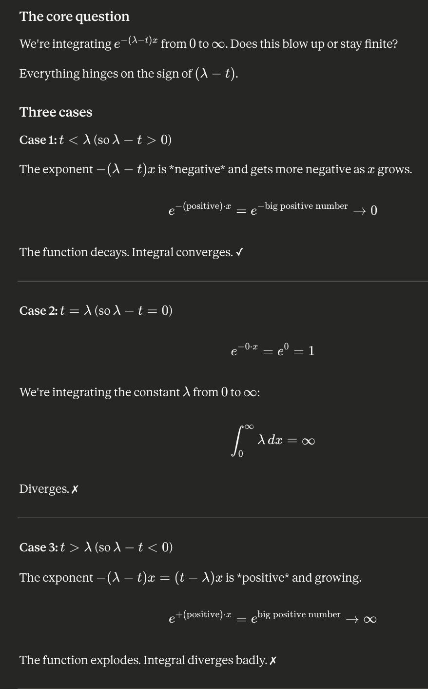 The main takeaways stemmed from (v). I worked through this pretty effectively, but above all I should’ve split the integral:
