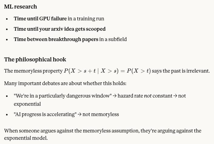 To be honest, the textbook always tries to use ‘real-world examples!’ like waiting for a bus, and those just don’t track my world.