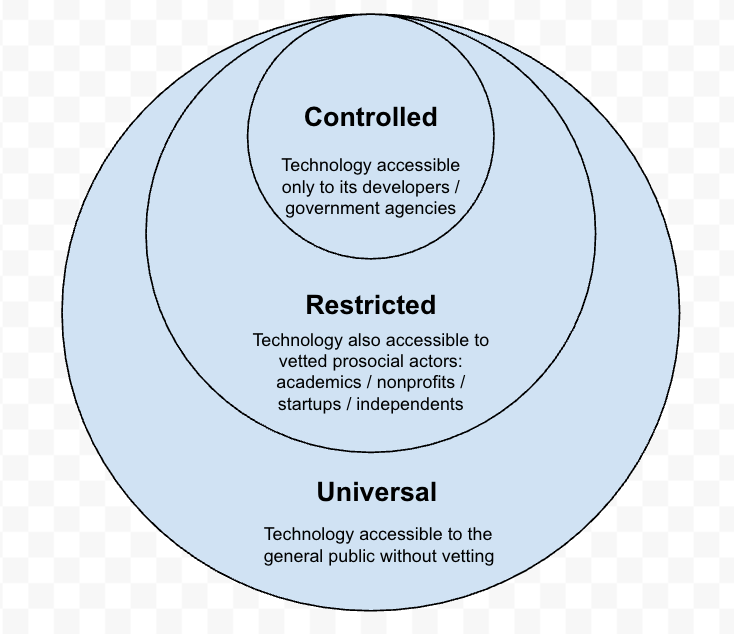 To discuss this, let me introduce three levels of technology access: Universal, Restricted, and Controlled.
